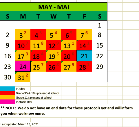 Please note that Premier Legault has announced that students within the Outaouais region are scheduled to return to school this coming Monday, May 17.